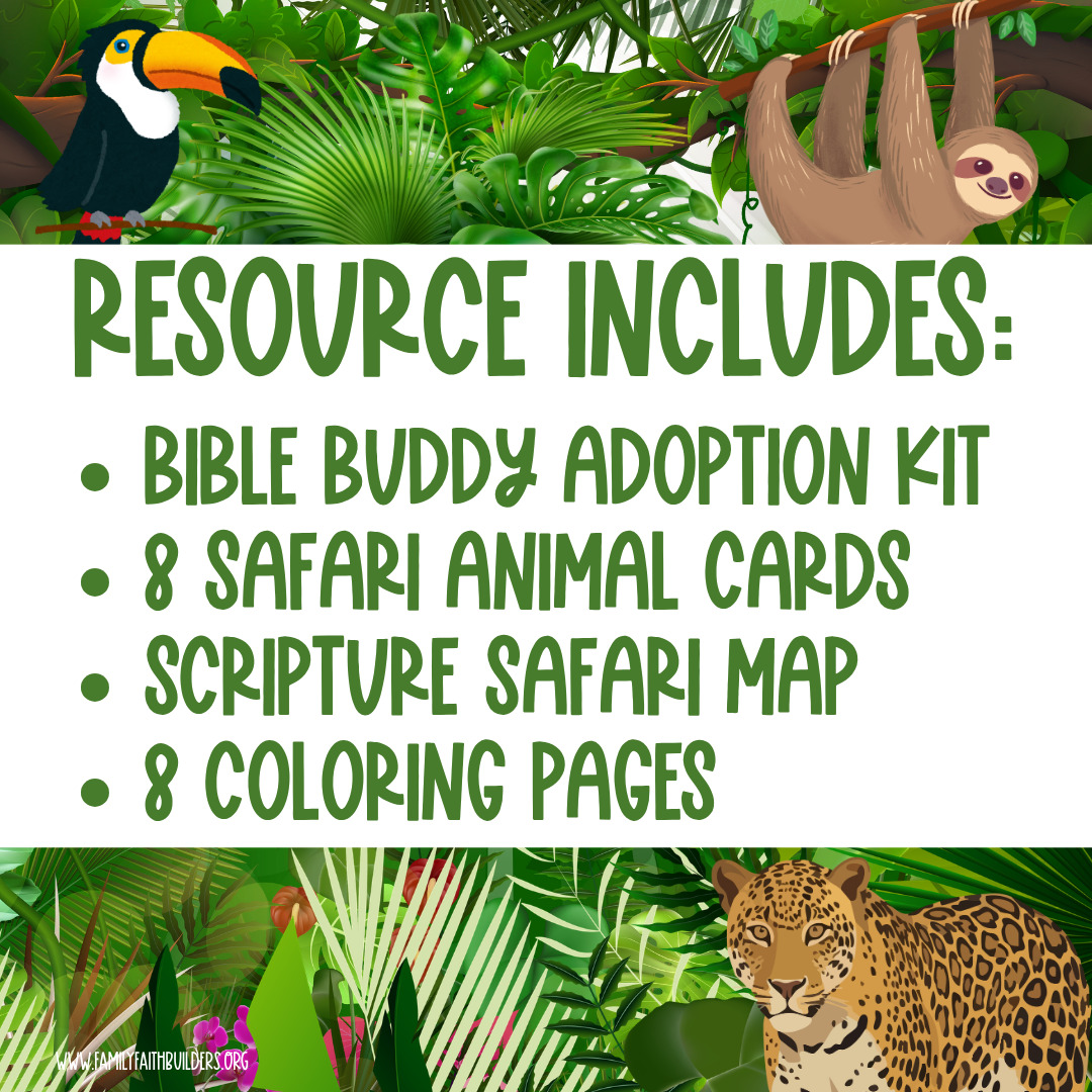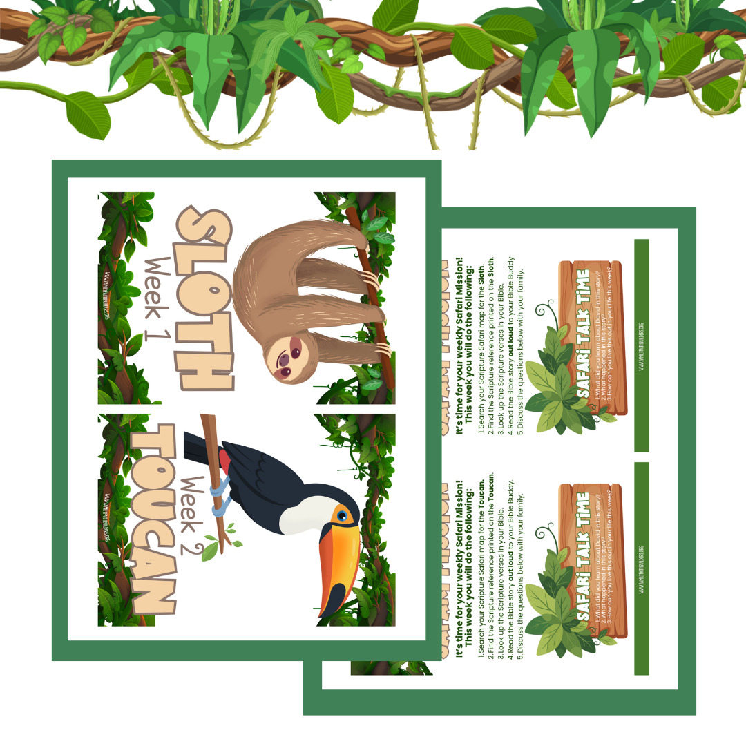 Scripture Safari is a fun, rainforest-themed interactive resource designed to help kids learn how to use their Bible and strengthen their reading skills during the summer as they explore the life of David. Instead of just hearing Bible stories, kids will search for them, find them, and read them out loud, all the while going on a rainforest safari with their very own Bible Buddy!