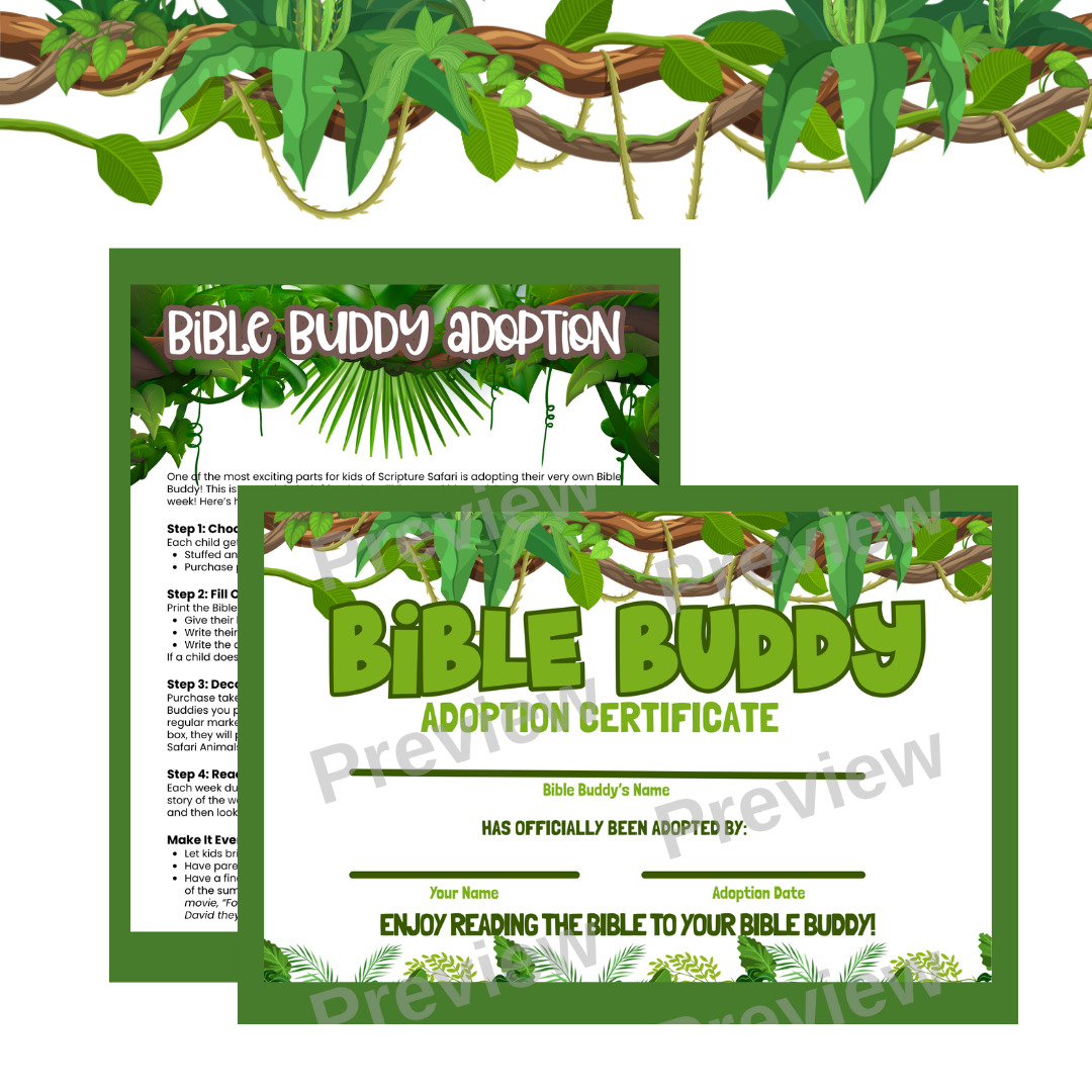 - Bible Buddy Adoption Kit (instructions and adoption certificate)